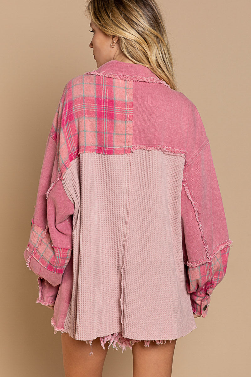 Spring Scout Pink Vintage Oversized Plaid Jean Jacket